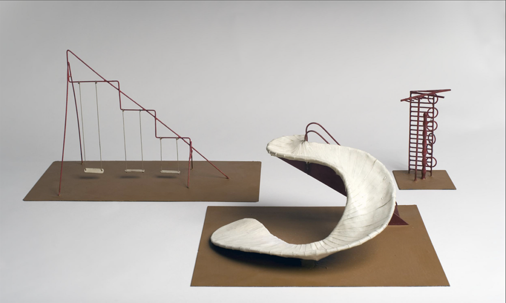 Noguchi’s New York encompasses more than 50 works, including sculptures, project models, photographs, and archival materials. The exhibition also brings to life Noguchi’s visions for unrealized playgrounds and playground equipment through a series of hand-painted animated films.