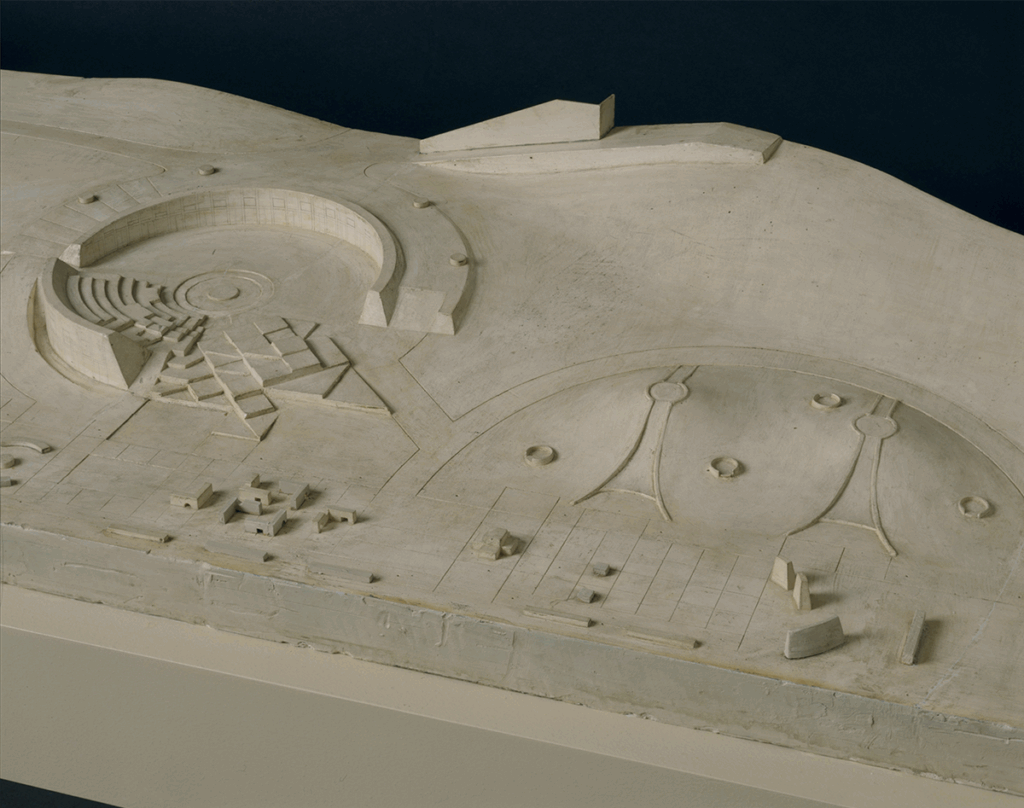 Noguchi’s New York encompasses more than 50 works, including sculptures, project models, photographs, and archival materials. The exhibition also brings to life Noguchi’s visions for unrealized playgrounds and playground equipment through a series of hand-painted animated films by Jack Cunningham and Nicolas Ménard of Eastend Western.